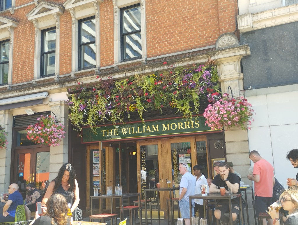 Tornando sul corso principale del quartiere, Morris sembra comunque non volerci lasciare. Infatti, uno dei pub più frequentati della zona è proprio dedicato a lui. Anche se non volete bere, merita davvero entrare nel locale, che è letteralmente tappezzato di foto, curiosità e cimeli legati proprio alla vita di Morris e della sua cerchia sociale. In una specie di caccia al tesoro poi, i più curiosi saranno sorpresi di trovare un arazzo del nostro William nelle scale che portano ai bagni del pub. Posizione non proprio felice, ma di sicuro questo fa sì che molti, forse ignari, ci passino davanti tra una bevuta e l’altra.