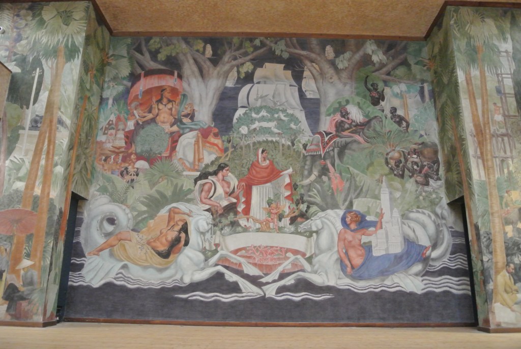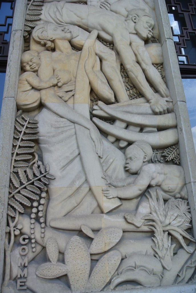 Il MNHI è infatti ospitato all’interno del Palais de la Porte Dorée, un imponente edificio neoclassico progettato dall’architetto Albert Laprade per l’Esposizione Universale di Parigi del 1931, nella periferia orientale della capitale francese. Con la sua ampia facciata in Art Déco, ornata da bassorilievi esotici che ritraggono la natura e le popolazioni indigene delle colonie, e le sue ampie sale che conservano giganteschi affreschi che descrivono la Francia come una potenza benevola che porta civiltà, religione e medicina ai quattro angoli del globo, questo edificio rappresenta ancora oggi un aperto omaggio all’imperialismo francese, come lo era stato al momento della sua prima inaugurazione. Infatti, nonostante l’edificio abbia cambiato più volte funzione nel corso del XX secolo, ospitando diverse collezioni – prima il Musée Permanent des Colonies (1932), poi il Musée de la France d’Outre-mer (1935) e il Musée des Arts Africains et Océaniens (1960) – in tutte queste metamorfosi non ha mai sembrato riconsiderare le sue narrazioni profondamente eurocentriche e orientaleggianti, rimaste radicate in un discorso di egemonia verso l’altro, non francese ed esotico.